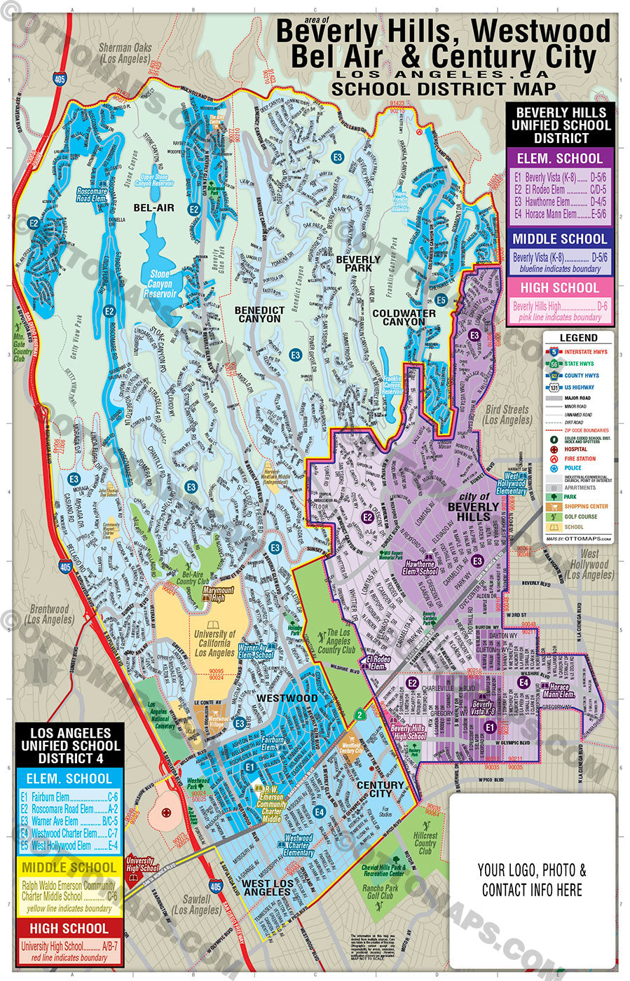 Beverly Hills, Bel Air, Westwood, Century City School District Map