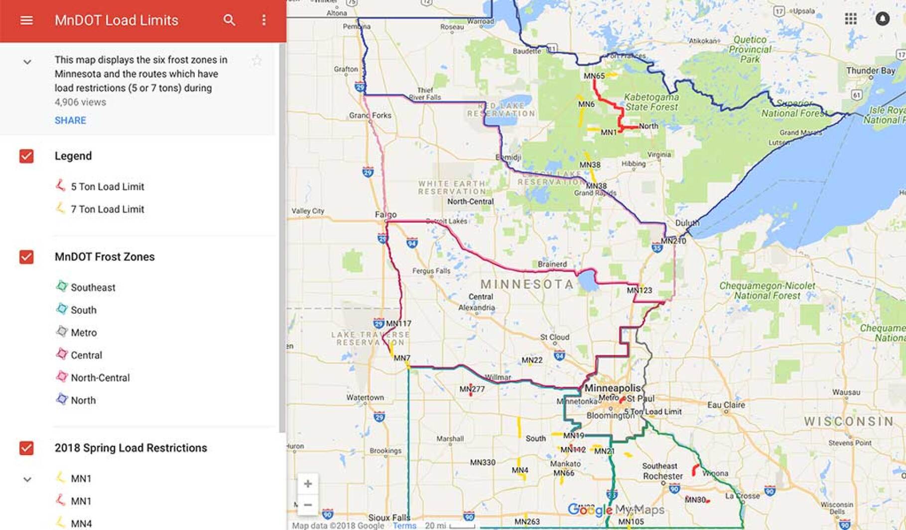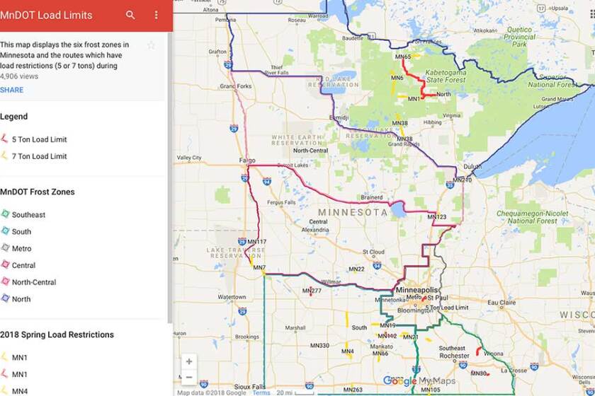 Mn Spring Road Restrictions Map MnDOT Ends Spring Truck Weight Restrictions In Central Frost Zone : 2024 spring road restrictions have ended in all climate zones. The purpose of Spring Road Restrictions is to protect Manitoba’s surfaced pavements from undue damage by reducing allowable axle weights . MarketsFarm โ Warming temperatures and melting snow across Western Canada may cause some disruptions to grain and livestock movement over the next few weeks as seasonal spring road restrictions come .