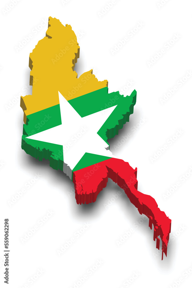 Myanmar (Burma) 3d map with flag Stock Vector | Adobe Stock