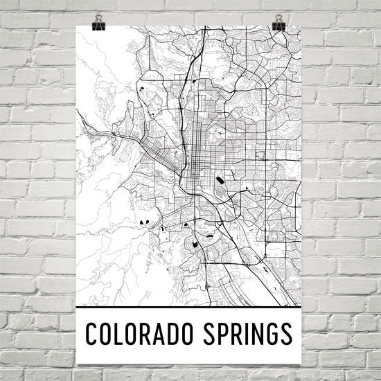 Colorado Springs CO Street Map Poster Wall Print by Modern Map Art